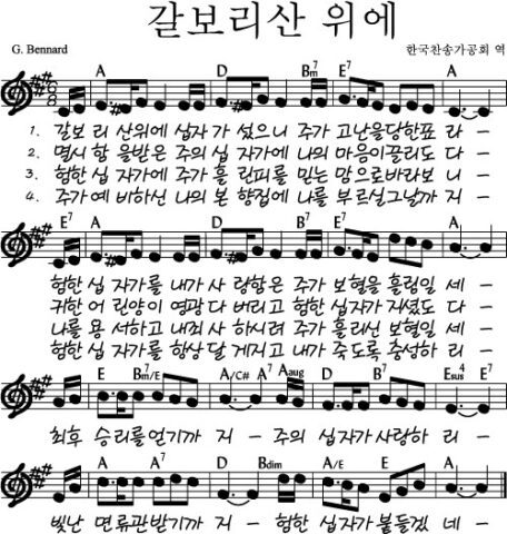 1. 갈보리산 위에 십자가 섰으니 주가 고난을 당한 표라