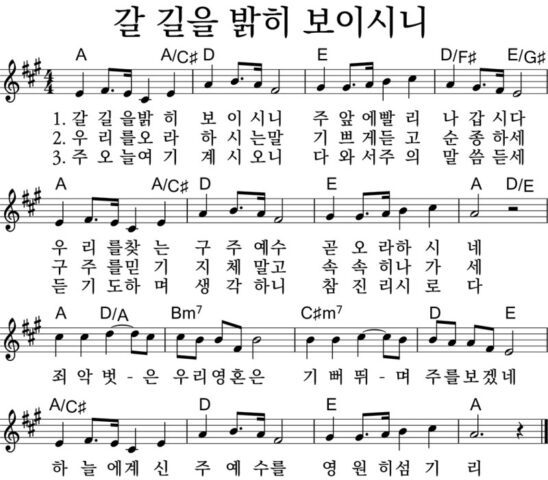 A코드 찬양 – 갈 길을 밝히 보이시니 (찬송가524장) 악보 다운로드 및 묵상