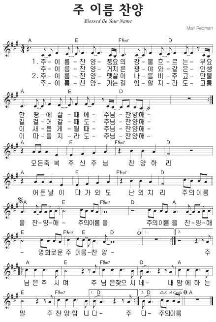 A코드 찬양 – ‘주 이름 찬양’ 악보 다운로드 및 묵상