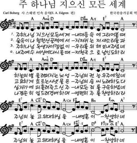 A코드 찬양 – 주 하나님 지으신 모든 세계 (찬송가 79장) 악보 다운로드 및 묵상