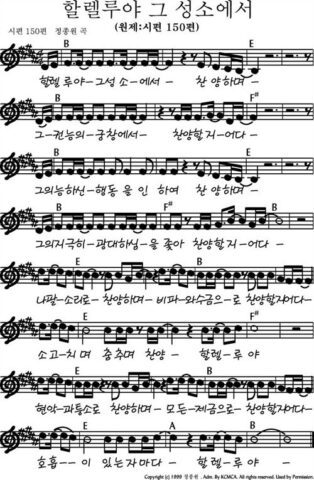 B코드 찬양 – 할렐루야 그 성소에서 (시편 150편) 악보 다운로드 및 묵상