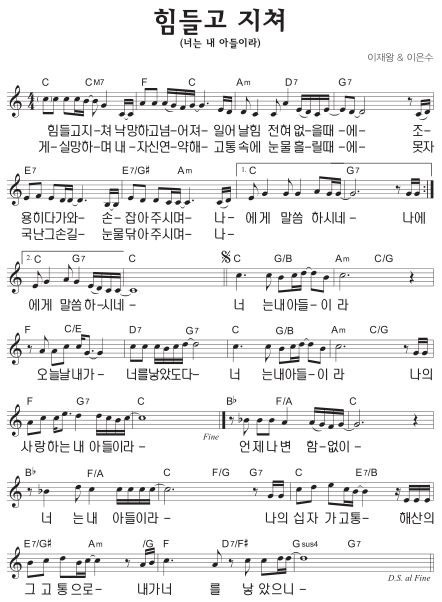 C코드 찬양 – 힘들고 지쳐 (너는 내 아들이라) 악보 다운로드 및 묵상